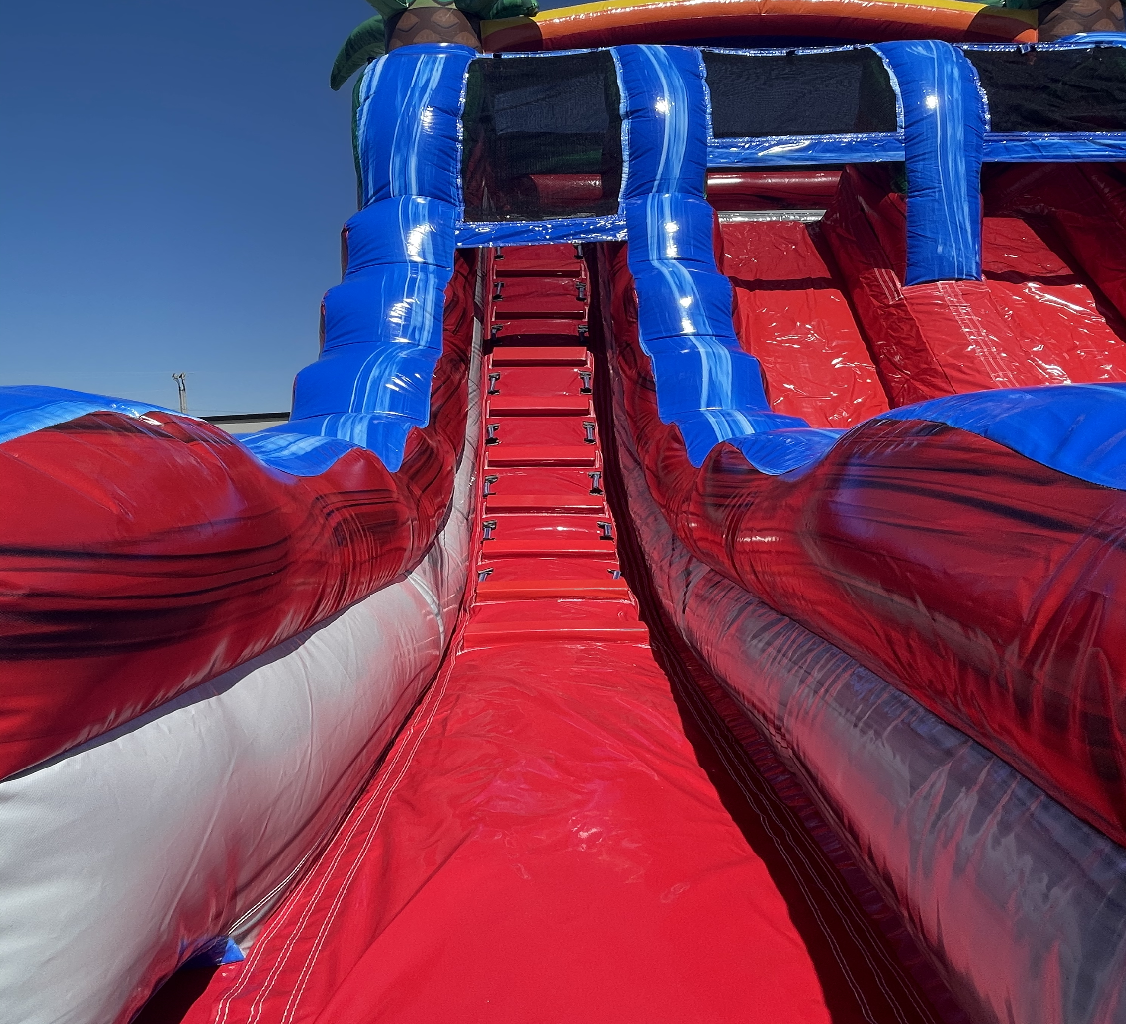 Add the Wow Factor to your next party with the Baja Blast Dual Lane Inflatable water slide. The Baja Blast Dual Lane Inflatable water slide is an inflatable water slide with two lanes. It can be used by two people at the same time and creates competition. This inflatable water slide is designed for both kids and adults. Give your child a wonderful birthday gift or simply rent it for a good time for really no reason. Our party rentals are always popular but the water slide rental is typically sold out quickly. If you are looking to add a water slide rental, don’t delay. Call today! We all know how much kids love to play games and compete against each other, so this inflatable water slide is perfect for them! Give your kids something that they can create memories of a lifetime with their friends and family. A water slide rental is always a huge hit and they will be talking about it for years to come. The Baja Blast Duel land is perfect for larger parties as the lines will have both sides to operate, keeping the lines down. Or have it set up in your backyard. We work with clients big and small to set up the perfect party for their guests.