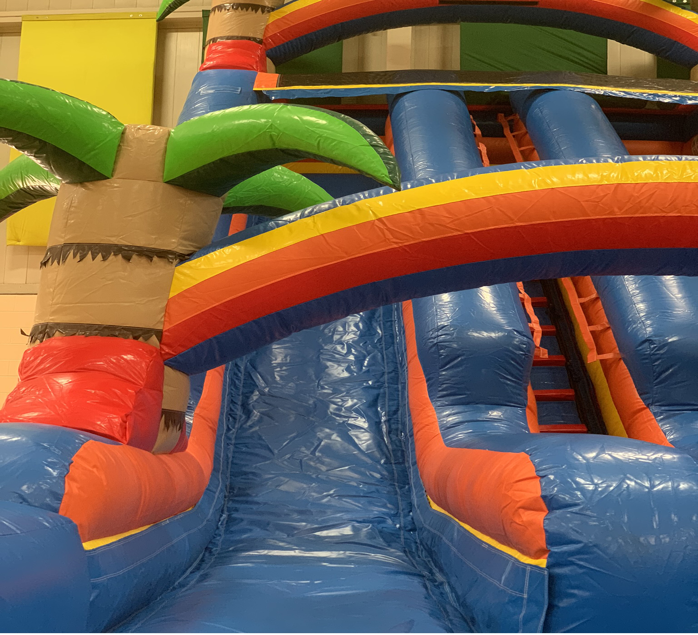 Blazin Tropical Slide was named water slide rental of the year. Why not use this gigantic dry slide for your next event, party, or gathering? Shelf Service Bouncers knows that all events and even fall festivals like to use inflatable dry slides so we have you covered!! Blazin looks amazing with the palm trees and bright colors. Don’t forget the IPS tap lights game.