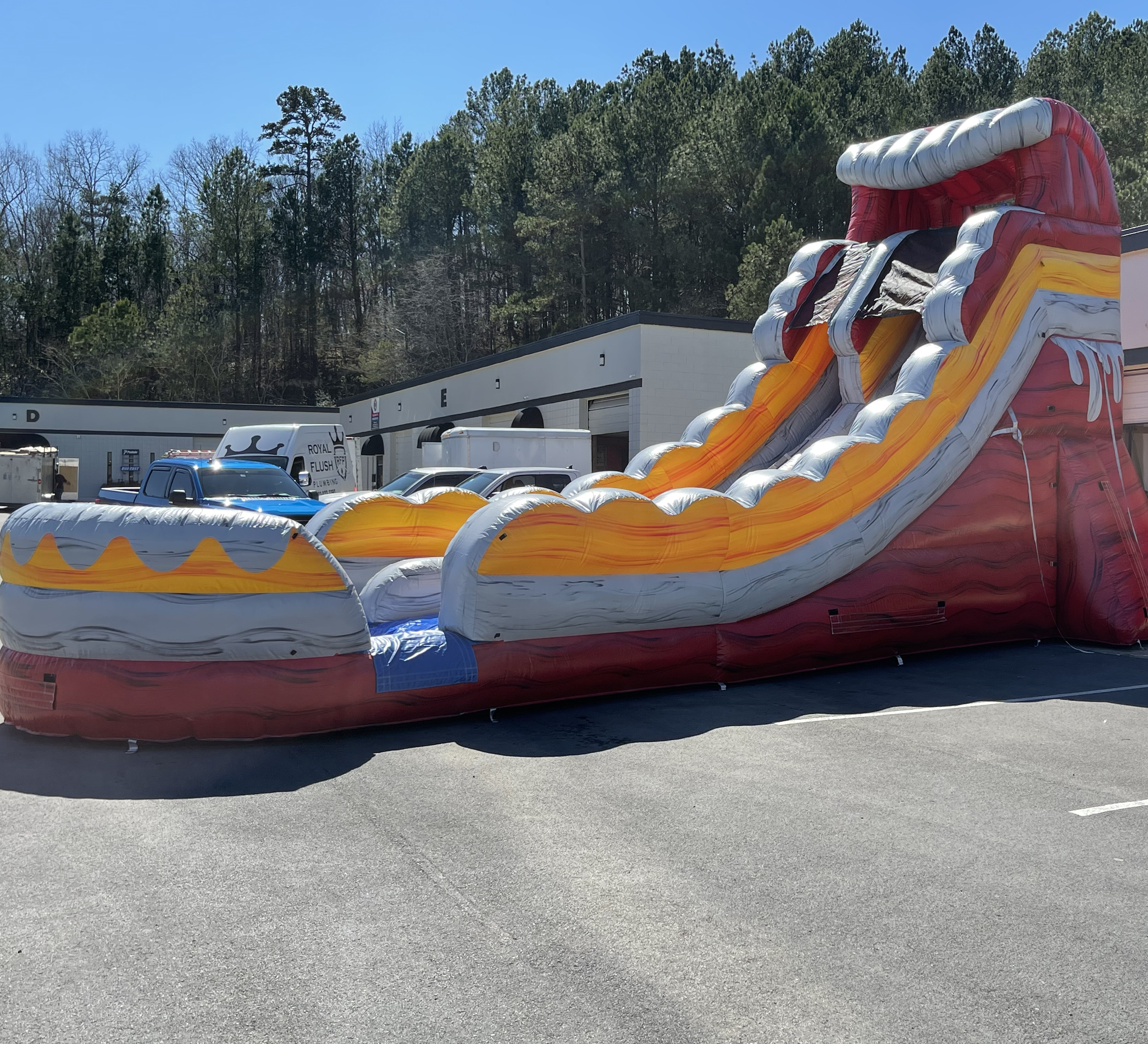 Volcano single lane Dry Slide Rental is a smaller waterslide that is perfect for those that are looking to surprise their kid in the backyard party. We love this slide as it still makes a huge impact at the bottom with a huge splash. Kids love the volcano single lane Dry Inflatable Slide as it is super fun and great to beat the Chattanooga heat. Give your child an experience gift with their friends with a backyard party completed with a Dry Inflatable Slide. This is a day they will always remember. We deliver all of our inflatable water slides right to your party. Check out our Bounce Houses Rentals too